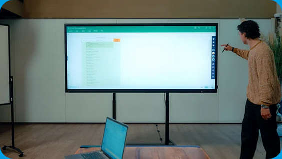 Erreichen Sie ein neues Level an Produktivität mit dem 92-Zoll-Interaktiven Touchdisplay von Legamaster. Der ultraweite 21:9-Screen bietet herausragende Klarheit – ideal für Multitasking, Datenanalyse oder beeindruckende Präsentationen. Mit Funktionen wie Dual-Display und Bild-in-Bild meistern Sie Aufgaben mühelos. Dank präziser 50-Punkt-Touch-Technologie ist die Interaktivität nahtlos, und die Anti-Glare-Technologie sorgt für klare Sicht unter allen Bedingungen. Nutzen Sie Apps wie Miro oder Lucid für unbegrenzte Kreativität.