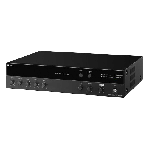 Die A-3500D Serie beinhaltet Class D Mischverstärker mit 60 , 120, 240 oder 480W Verstärkerleistung. Sie verfügen über Notfall- und Prioritätsdurchsagenfunktion, sind mit 3 MIC/LINE (wählbar) Eingängen ausgestattet, 1 MIC-Eingang und 1 AUX-Eingang, der auch als Musikquelle verwendet werden kann. Mit 2 Lautsprecherzonen, frontseitig bedienbar mit zwei Wahltastern, sind sie ideal für Durchsagen und Hintergrundmusikanwendungen in Einzelhandelsgeschäften, Schulen, Büros und Produktionsstätten.- 240 W Class-D-Mischverstärker für hoch- und niederohmige Lautsprecher