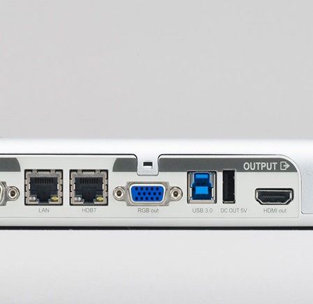 Der PX-30E verfügt über zahlreiche Möglichkeiten. Das Bild kann über HDMI, HDBaseT und VGA wiedergegeben werden. Via USB 3.0 lässt sich das Livebild an einen Computer übertragen. Eine externe Steuerung ist über Netzwerk (TCP/IP Control) und RS232-C möglich.