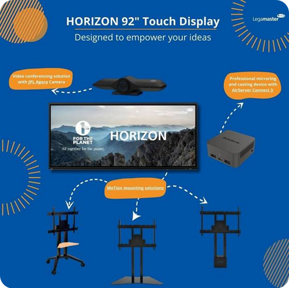 Das HORIZON Touchdisplay ist die perfekte Wahl für Unternehmen und den Bildungsbereich. Es bietet einen erweiterten Arbeitsbereich und ein integriertes Betriebssystem für maximale Funktionalität. Das innovative 21:9-Format setzt neue Maßstäbe und ist durch unser neues, installationsfreundliches Design so einfach und schnell wie nie zuvor einzusetzen..
