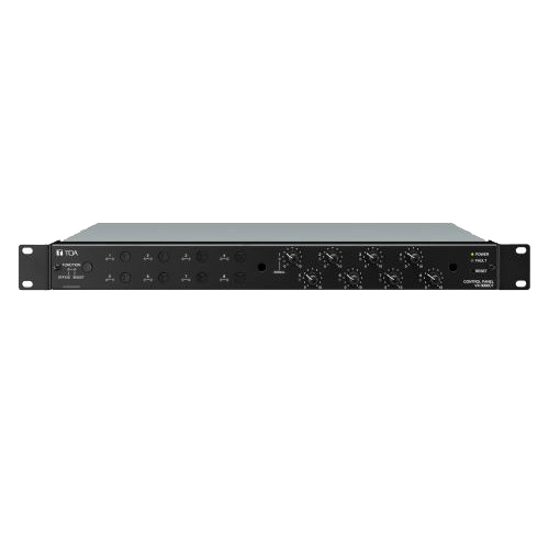Das Gerät verfügt über 9 Tasten für beliebig zuweisbare PA-Funktionen und 8 Lautstärkeregler, die jedem Audioeingang oder -ausgang des VX-3000-Systems zugewiesen werden können.