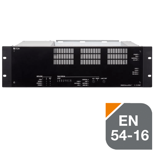 Das VX-3008F ist ein Systemrahmen zur Steuerung von Sprachnachrichten des Sprachalarmierungssystem VX-3000 von TOA, das der europäischen Norm EN 54 für Brandmeldeanlagen entspricht. Es verfügt über mehrere Audioeingänge und gibt die verstärkten Audiosignale an die Lautsprecherleitungen aus, insofern die optionalen Leistungsverstärkermodule installiert sind. Gefahrenmeldungen kann eine höhere Priorität zugewiesen werden als den regulären Durchsagen. Dabei können zwei Muster der Gefahrenmeldung gleichzeitig aktiviert werden. Als Netzwerk-basiertes System eignet es sich auch für den Einsatz bei verteilten Standorten. Zu den Vorteilen des VX-3008F-Systemrahmens zählen: Digitale Signalverarbeitung, die eine akustische Anpassung an die verschiedenen Eingangsquellen und die zu beschallenden Räume und Flächen ermöglicht. Automatische Echounterdrückung, die die Rückkopplung akustischer Signale vermindert. VOX-Funktion, die die Start-/Stopp-Steuerung der Durchsage über einen Audio-Trigger ermöglicht. ANC-Funktion (ambient noise control) ermöglicht die Umgebungsgeräuschkontrolle. Dabei unterscheidet die ANC-Funktion zwischen dem Ausgangsgeräusch des Systemrahmens und dem Umgebungsgeräusch. Das Ausgangsgeräusch des Geräts wird nicht als Rauschen erkannt. LED-Anzeigen in der Front des VX-3008F zeigen den Fehlerstatus und den Signalstatus des Leistungsverstärkers an. Der Systemrahmen verfügt über 8 Lautsprecherausgangskanäle. Insgesamt können 3 Leistungsverstärkermodule (2 Zonenverstärker und 1 Havarie-Verstärker) installiert werden. Es können 8 Lautsprecherzonen angesteuert werden oder 4 Zonen mit A/B-Verkabelung der Lautsprecherlinien. Ausgestattet mit einem Matrix-Ausgang können die Zonen einem oder beiden Verstärkern zugeordnet werden (2-kanaliger Audiobus). Durch Festlegen des Matrixausgabeziels können 1-Bus- und 2-Bus-Zonen gleichzeitig verwendet werden. Das System kann auf 16/24/32 Zonen bzw. 8/12/16 A/B-Zonen erweitert werden. Die Anzahl der Zonen kann erhöht werden, indem der Rahmen mit Verstärkermodul(en) und ein Erweiterungsrahmen ohne Verstärkermodul verbunden werden. Da der VX-3008F über einen Eingangs- / Ausgangsanschluss für den Havarie-Verstärker verfügt, kann der Havarie-Verstärker im eingebauten Zustand von weiteren VX-3000F-Einheiten gemeinsam genutzt werden.